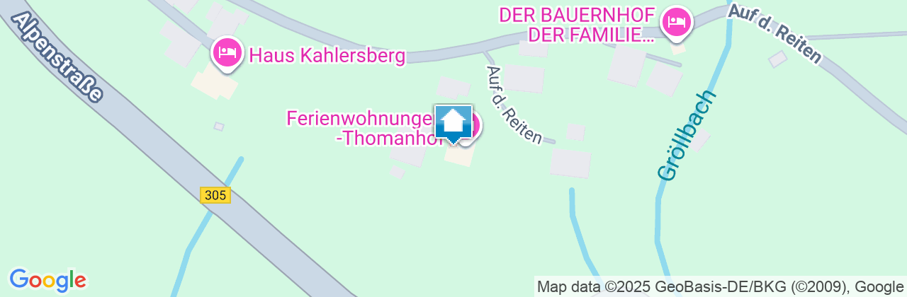 Autobahn A 8 München- Salzburg bis Ausfahrt Siegsdorf/Traunstein, weiter auf der B 306 Richtung Berchtesgaden, über Inzell, Weißbach bis Unterjettenberg, von dort auf der B 305 über Gasthaus Wachterl und Gasthof HindenburglindeRichtung Ramsau Zentrum. An der Abzweigung Hochschwarzeck vorbei fahren bis zur Abzweigung/Bushaltestelle "Auf der Reiten", hier links einbiegen und der Strasse folgen bis zum "Thomanhof".